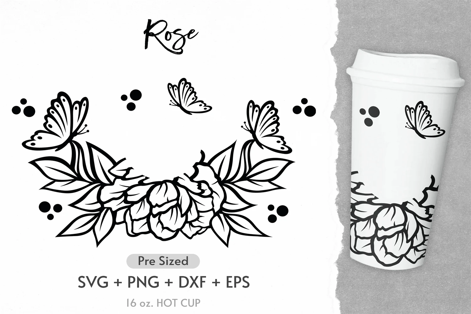 16oz Rose Starbucks Hot Cup Svg, Butterfly Svg, Flower Svg