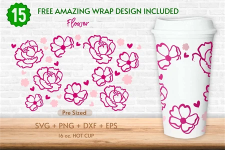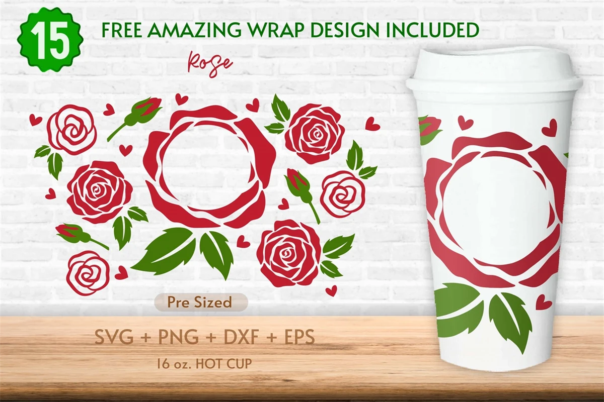 16oz Rose Starbucks Hot Cup Svg, Full Wrap Hot Cup Svg, Rose