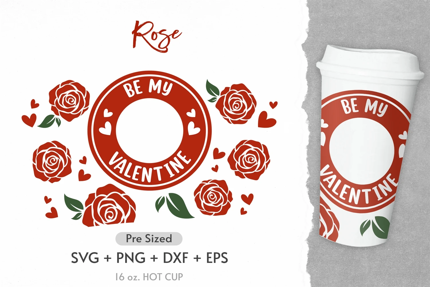 16oz Rose Starbucks Hot Cup Svg, Roses Svg, Flower Svg, Png