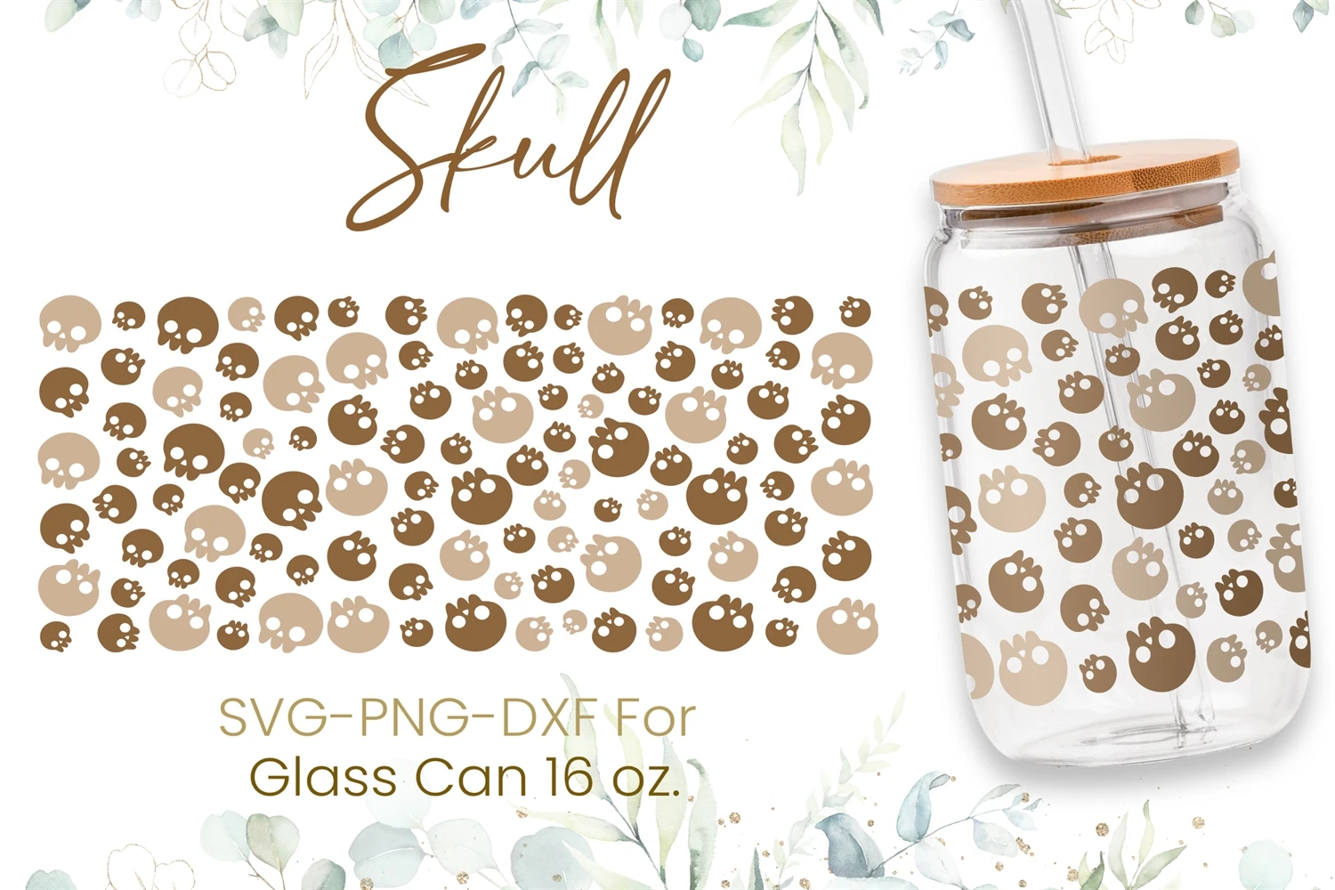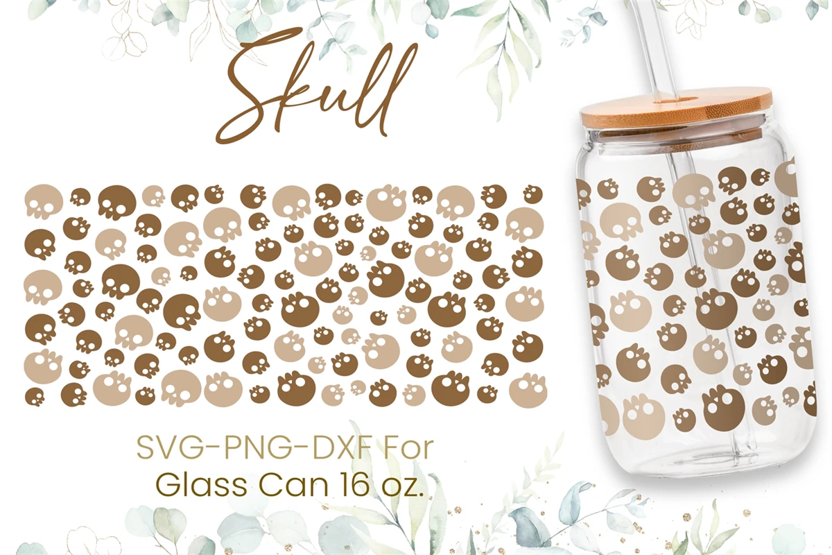 16oz Skull Libbey Glass Can Svg, Skulls Glass Can Wrap Svg