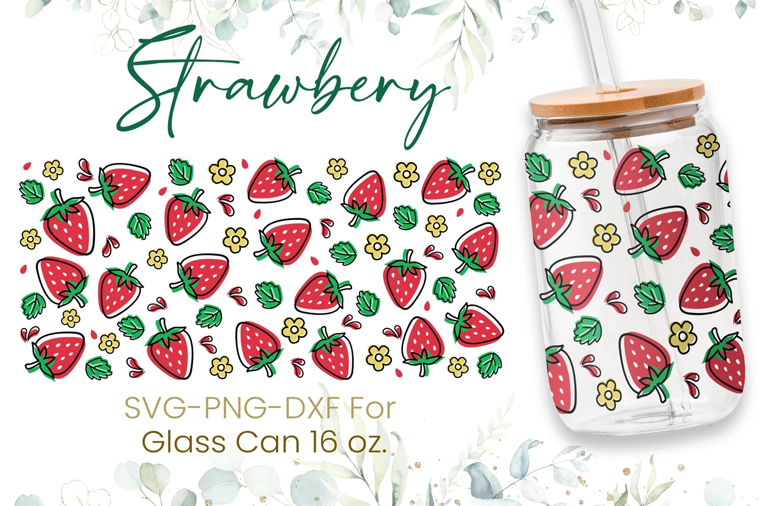 16oz Strawberry Libbey Glass Can Svg, Strawberry Pattern Svg