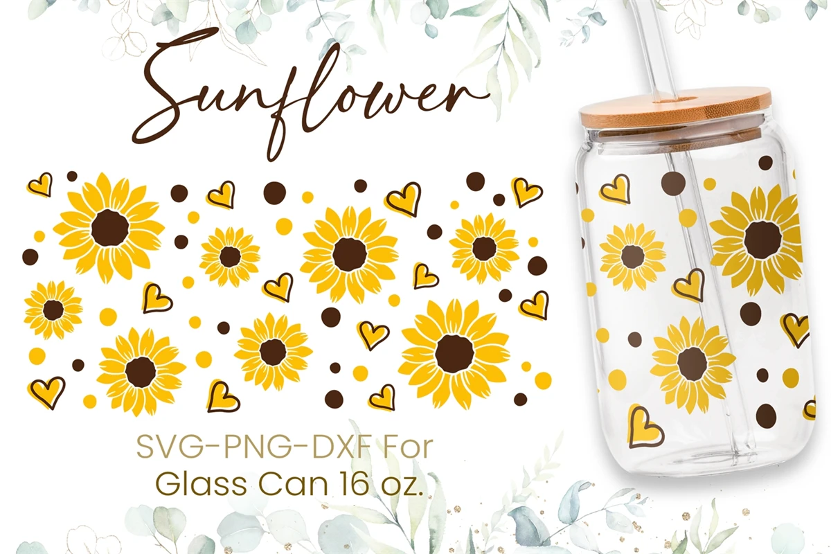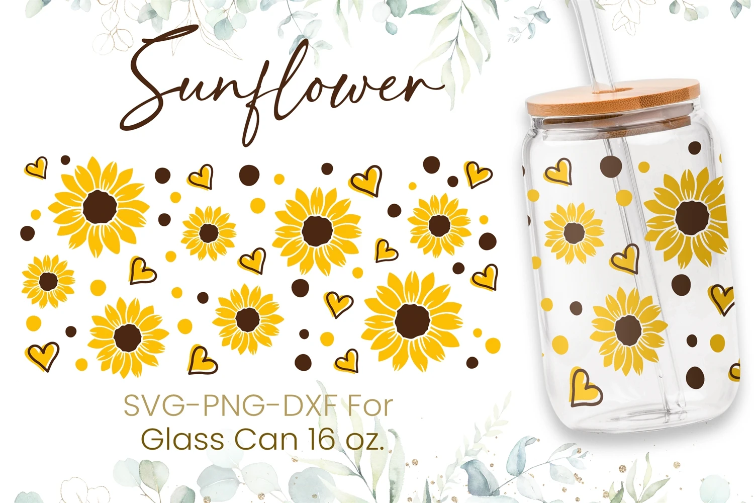 16oz Sunflower Libbey Glass Can Svg, Floral Svg, Flower Svg