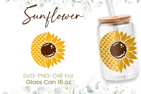 16oz Sunflower Libbey Glass Can Svg, Flower Svg, Tulips Svg,