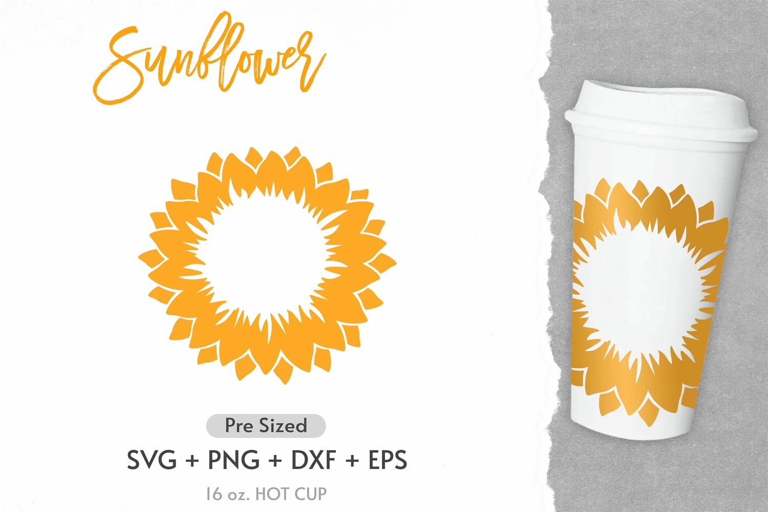 16oz Sunflower Starbucks Hot Cup Svg, Full Wrap Hot Cup Svg