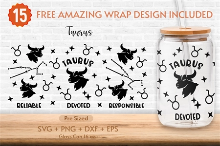 16oz Taurus Libbey Glass Can Svg, Pear Glass Can Wrap Svg