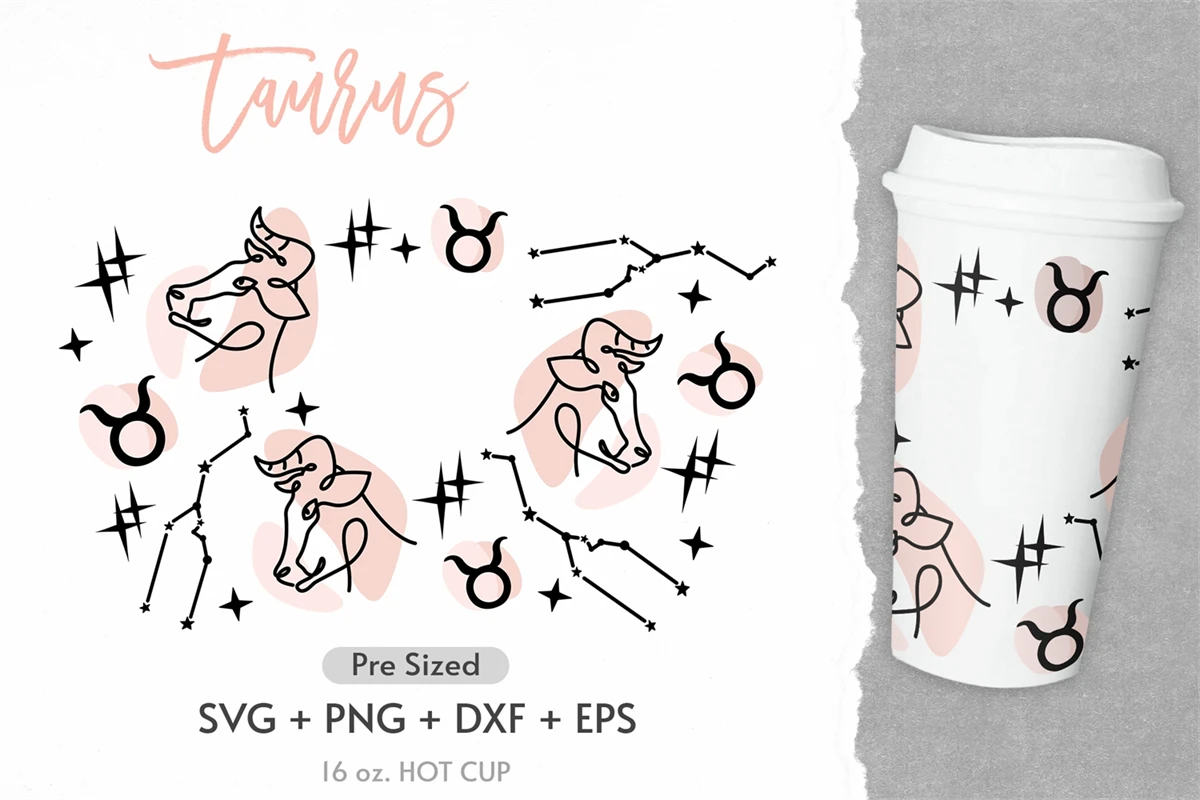 16oz Taurus Starbucks Hot Cup Svg, Bull Constellations Svg