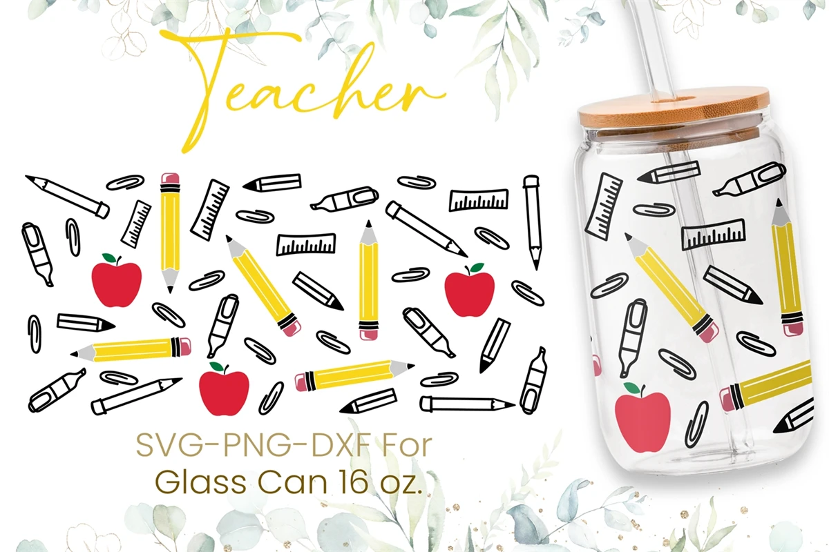16oz Teacher Libbey Glass Can Svg, Glass Can Full Wrap Svg