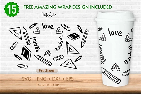 16oz Teacher Starbucks Hot Cup Svg,Teacher Life Svg, Apple