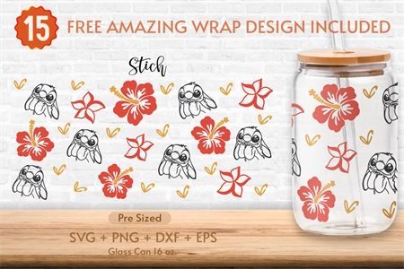 16oz Tropical Hibiscus Libbey Glass Can Svg, Stitch,Hibiscus