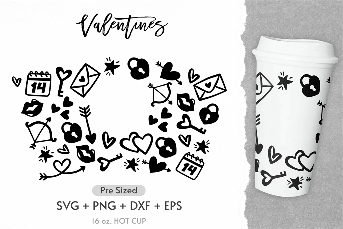 16oz Valentines Day Starbucks Hot Cup Svg, Kiss Svg,Love Svg