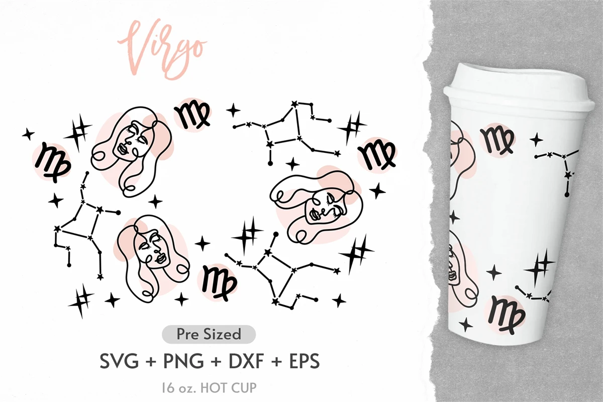 16oz Virgo Starbucks Hot Cup Svg, Zodiac Sign Svg, Cut File