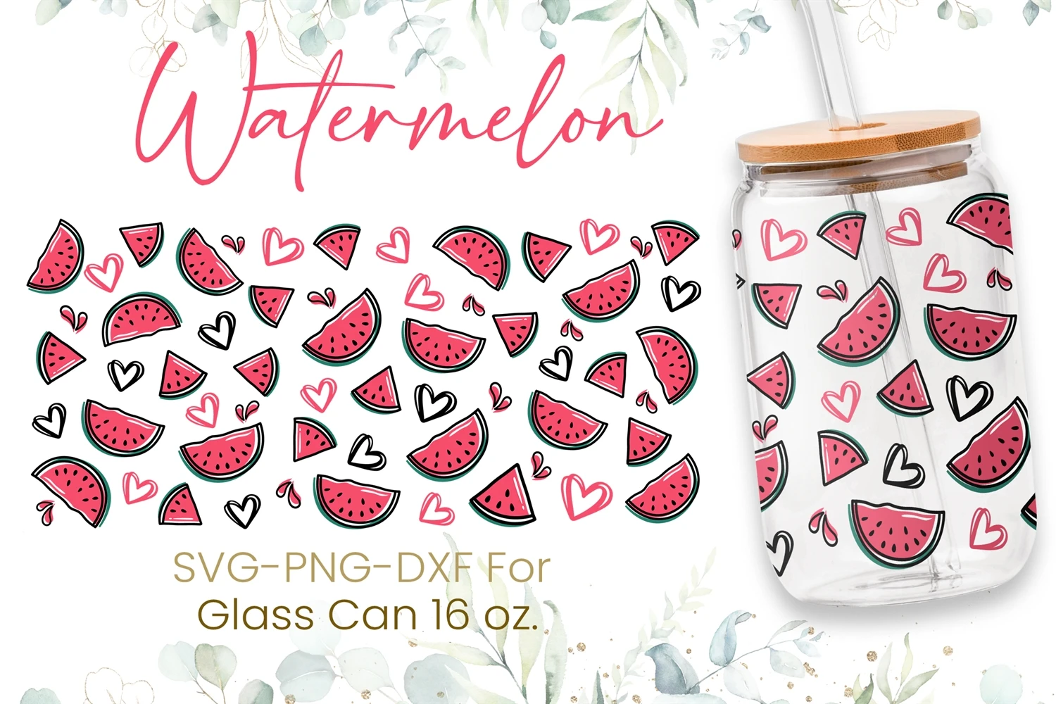 16oz Watermelon Libbey Glass Can Svg, Watermelon Pattern Svg