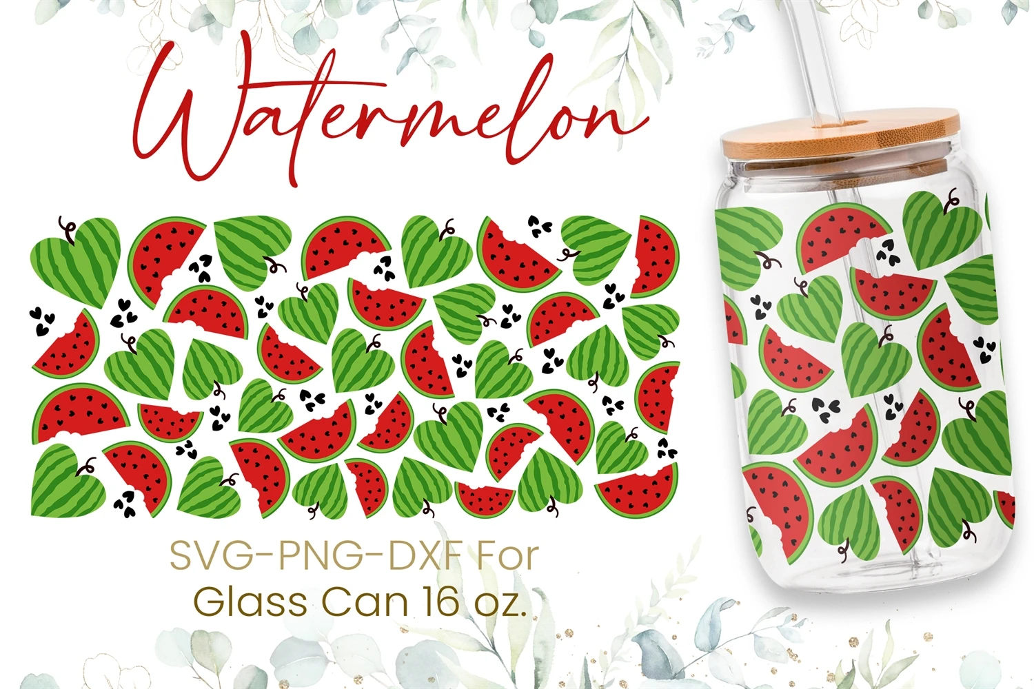 16oz Watermelon Libbey Glass Can Svg,Glass Can Full Wrap Svg