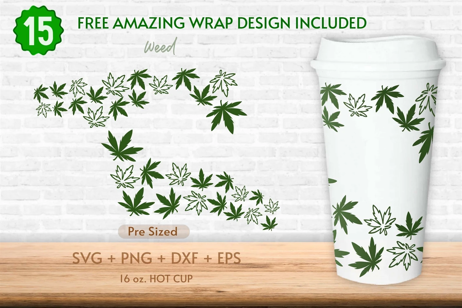 16oz Weed Starbucks Hot Cup Svg, Full Wrap Hot Cup,Weed Leaf