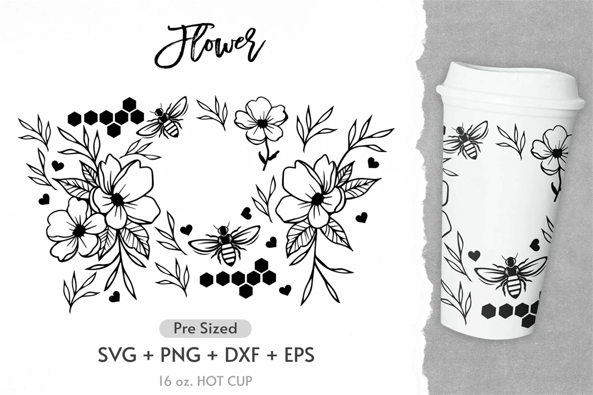 16oz Wild Flower Starbucks Hot Cup Svg,Roses Svg, Flower Svg
