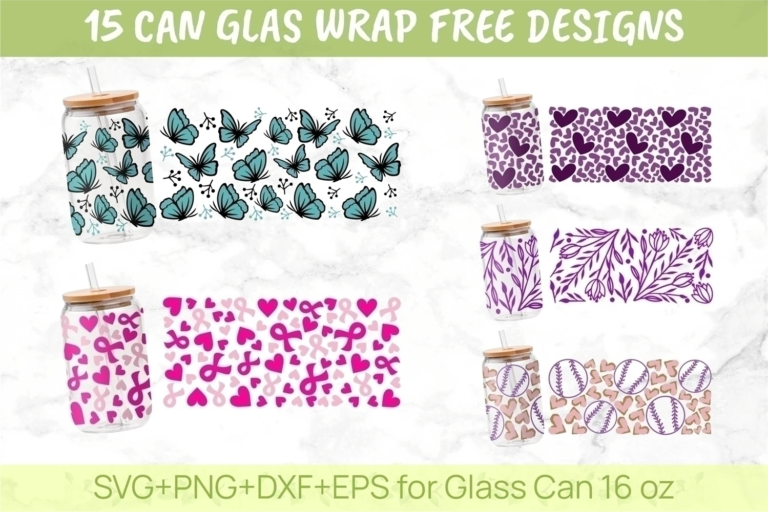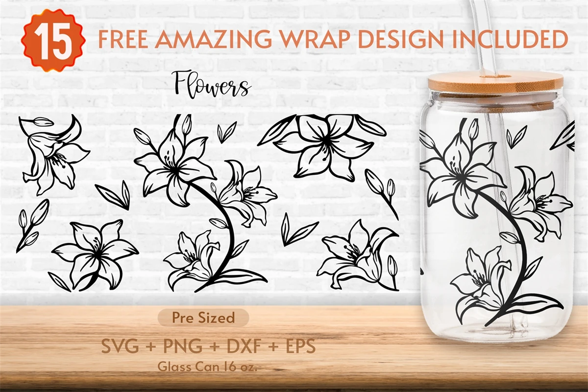 16oz Wildflower Libbey Glass Can Svg,Glass Can Full Wrap Svg