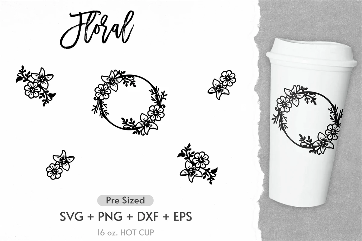16oz Wildflower Starbucks Hot Cup Svg, Full Wrap Hot Cup Svg