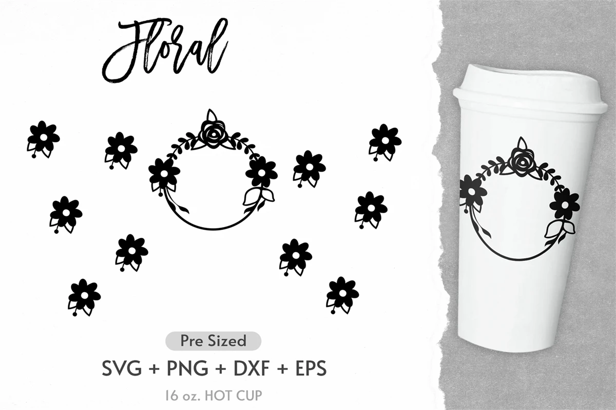 16oz Wildflower Starbucks Hot Cup Svg, Full Wrap Hot Cup Svg