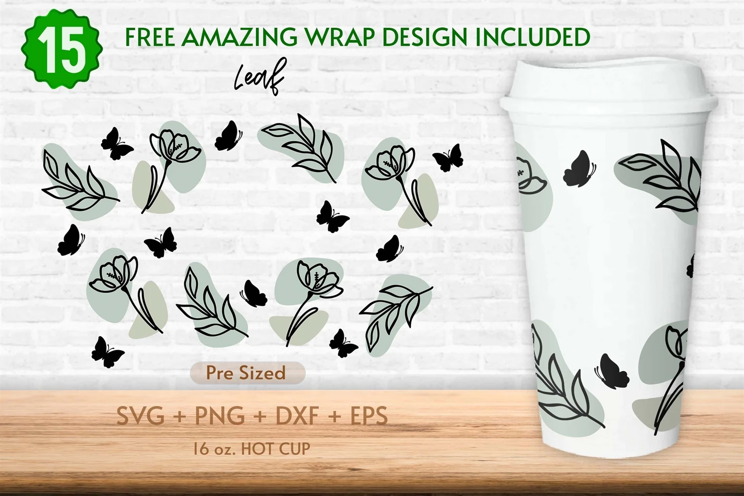 16oz Wildflower Starbucks Hot Cup Svg, Leaf Svg, Floral Svg
