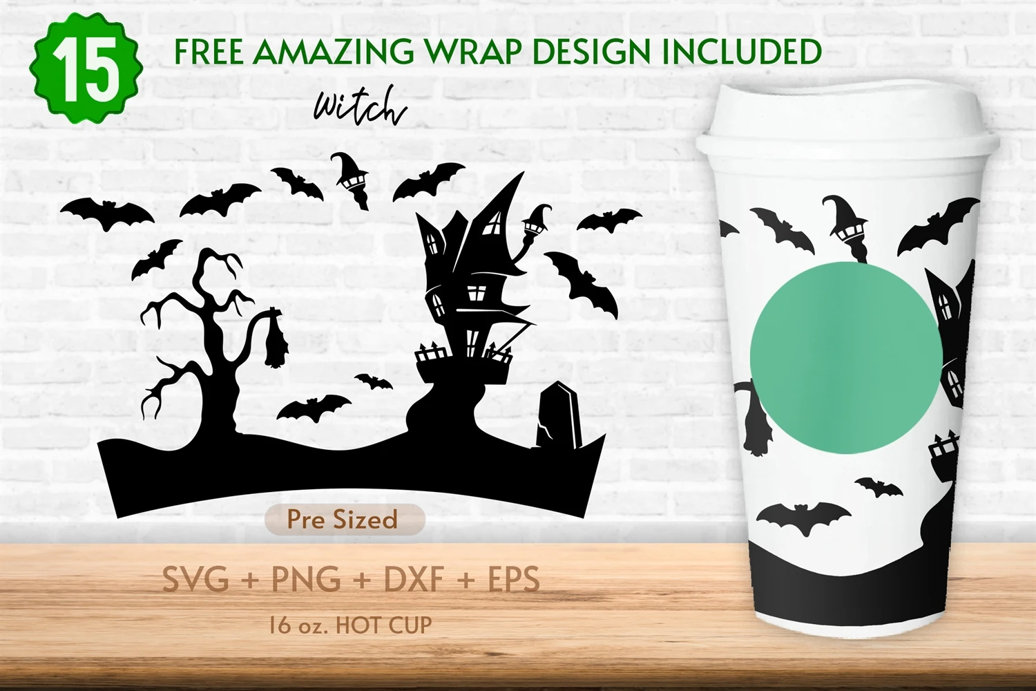 16oz Witch Coffee Hot Cup Svg, Trick or Treat, Horror, Witch