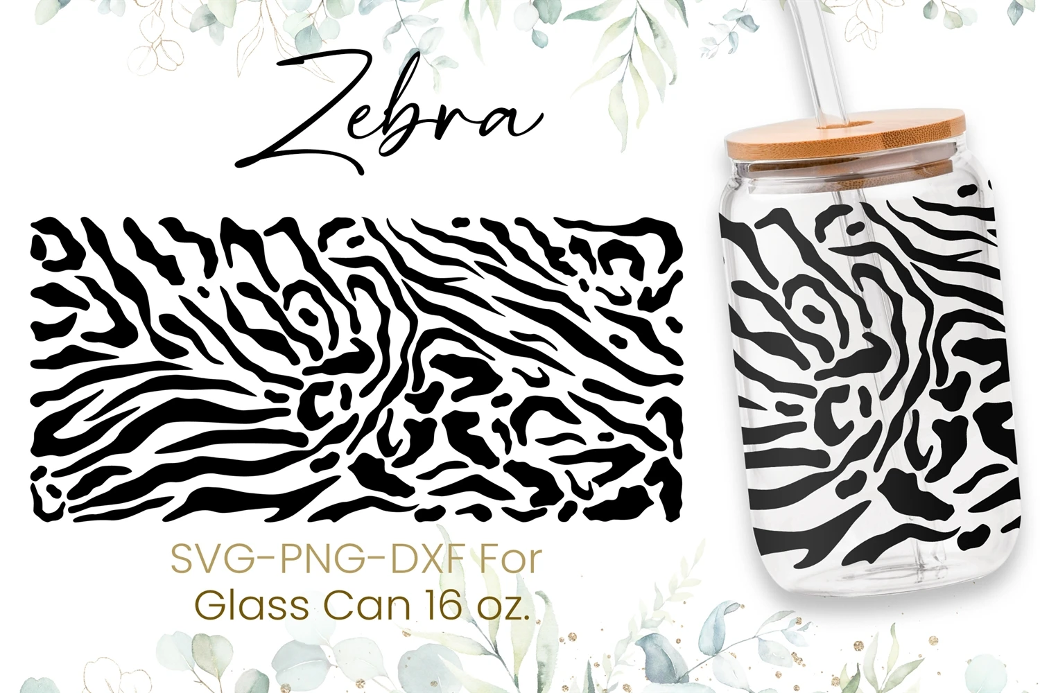16oz Zebra Pattern Libbey Glass Can Svg, Glass Can Wrap Svg