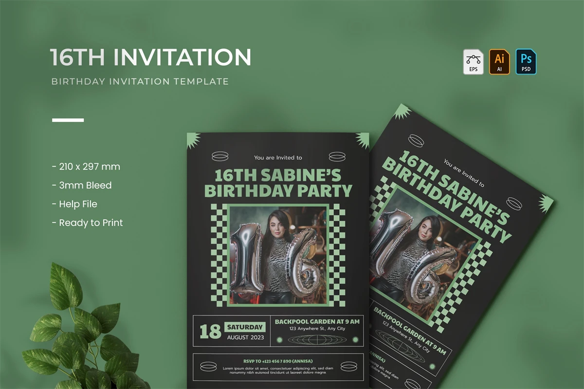 16th Birthday - Birthday Invitation