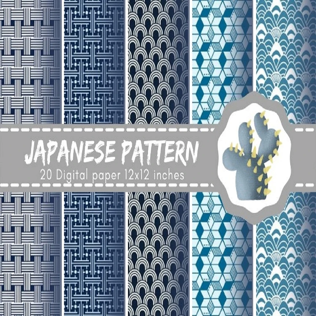 20 Blue Japanese pattern digital paper 12x12 inches 300 dpi
