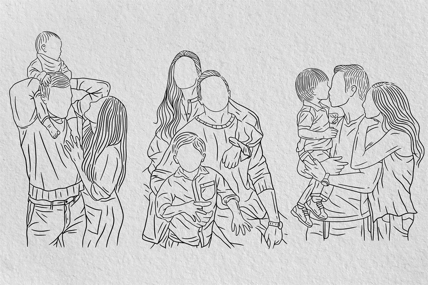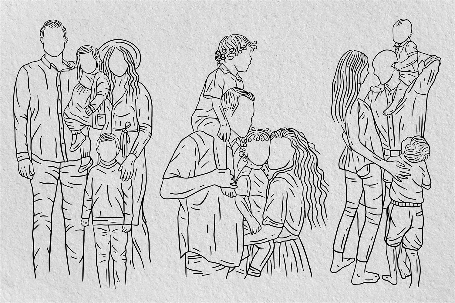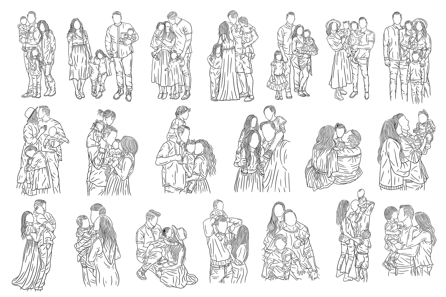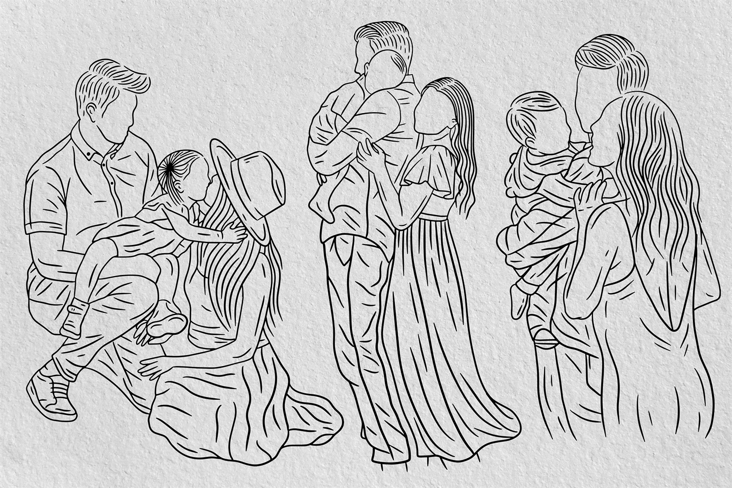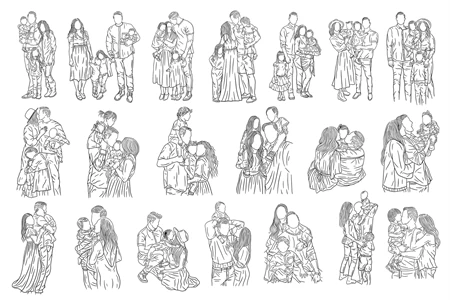 20 Happy Family Love With Mom and Dad with Child Hand Drawn