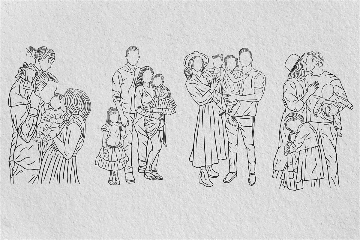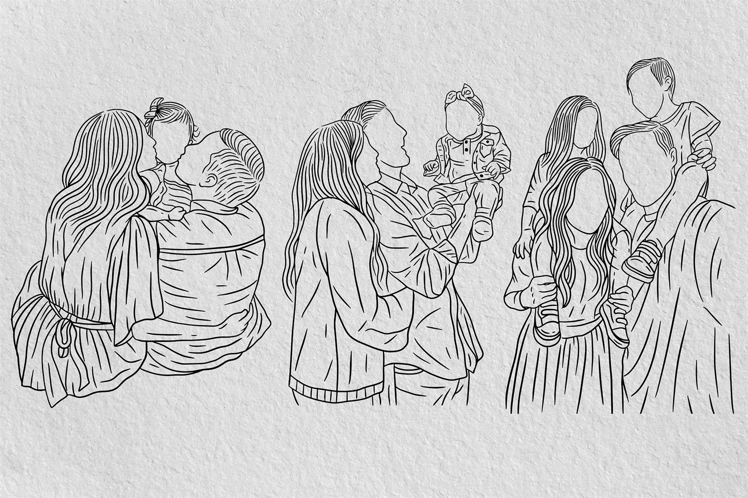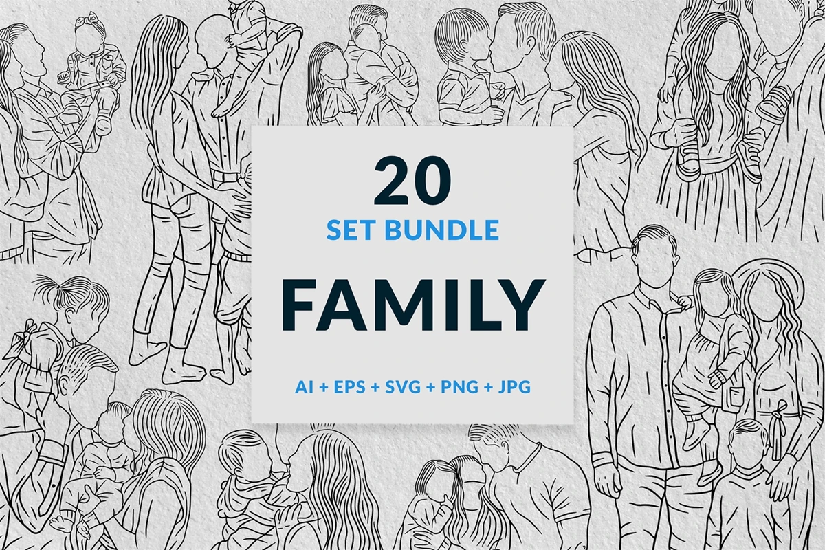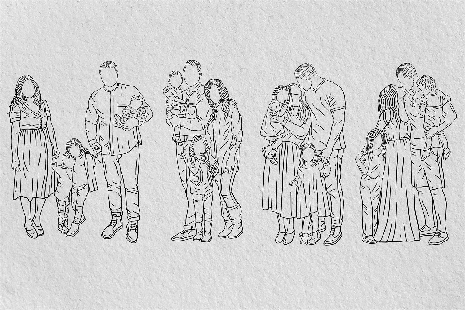 20 Happy Family Love With Mom and Dad with Child Hand Drawn