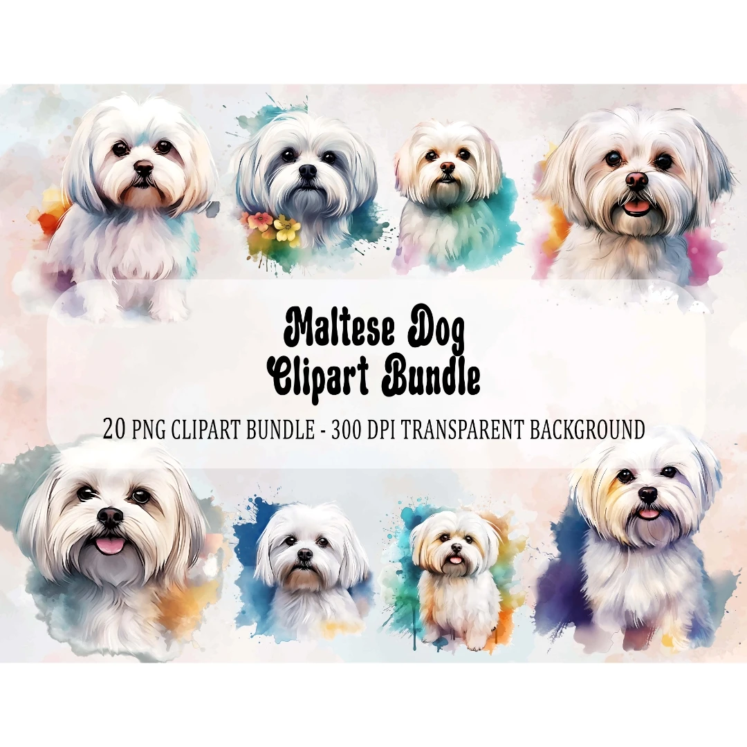 20 Maltese Dog Clipart PNG Bundle, Full Commercial Use