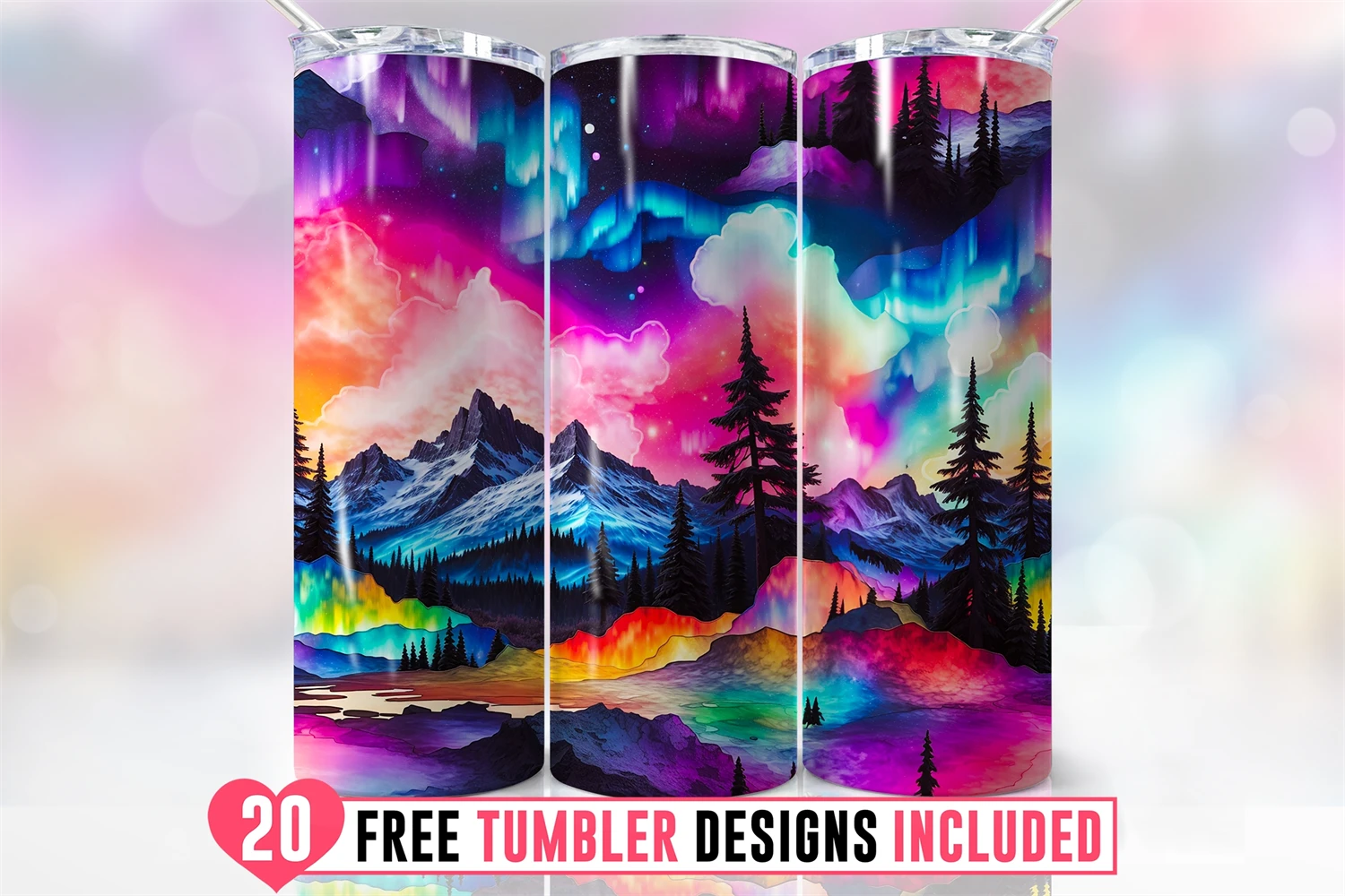 20oz Alcohol ink Northern Lights Skinny Tumbler Wrap Png