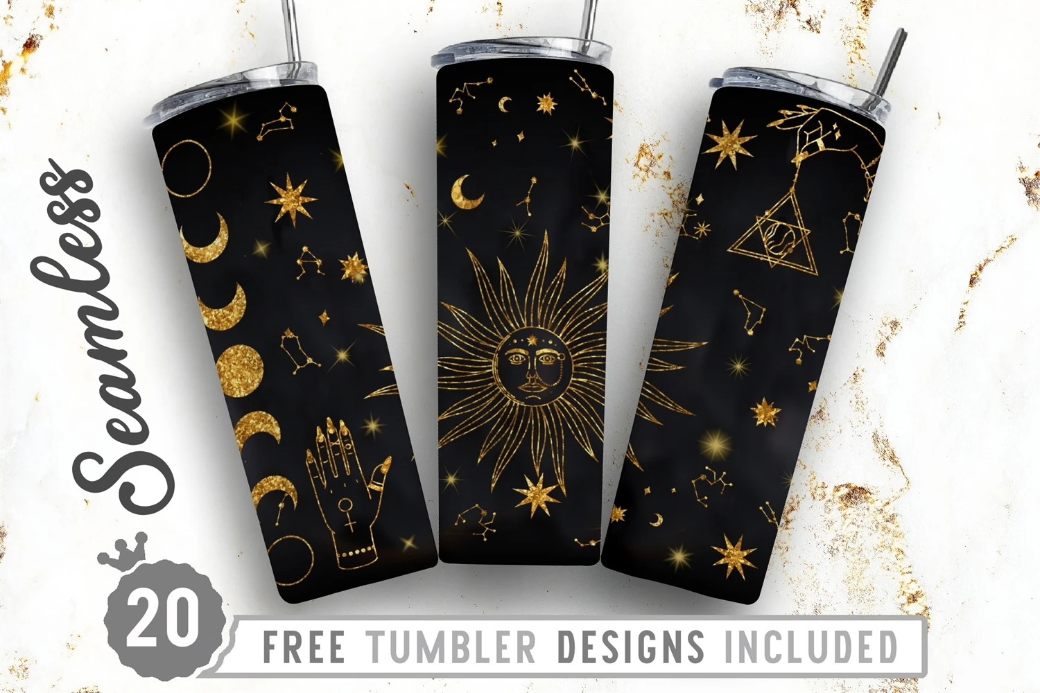 20oz Astrology Skinny Tumbler Sublimation, Straight Tapered