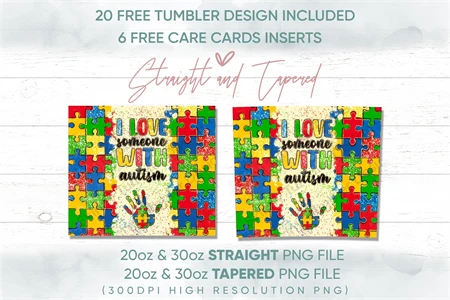 20oz Autism Skinny Tumbler Sublimation Png, Straight Tapered