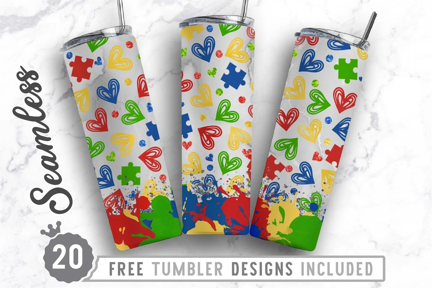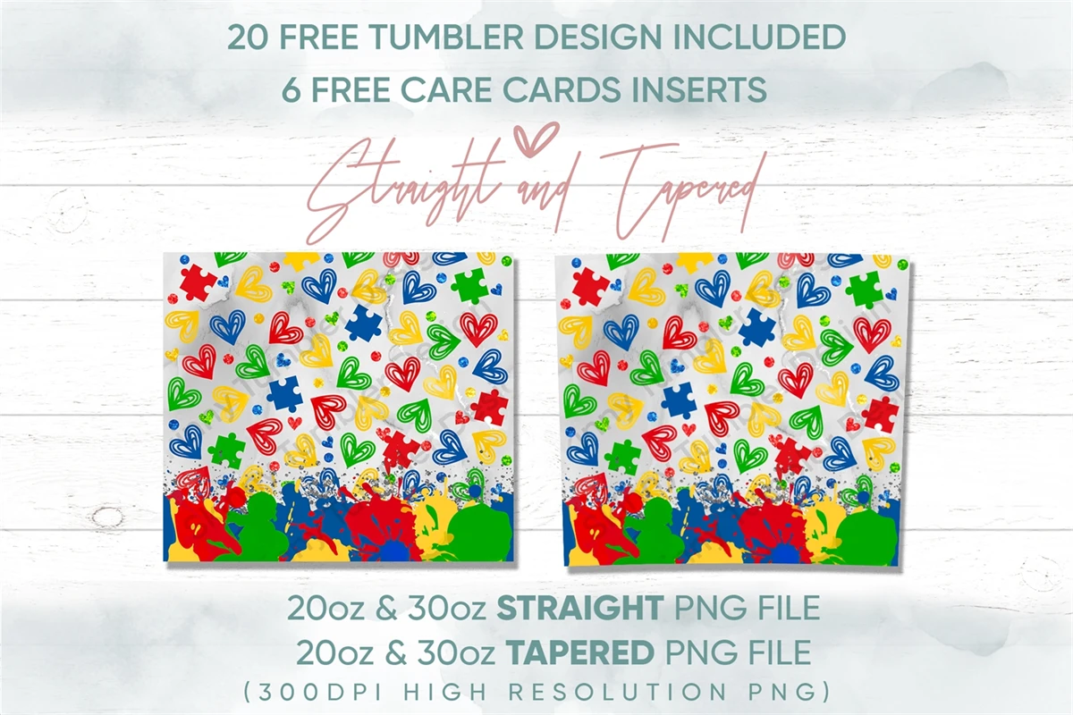 20oz Autism Skinny Tumbler Sublimation Png, Straight Tapered