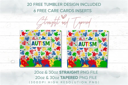 20oz Autism Skinny Tumbler Sublimation Png, Straight Tapered