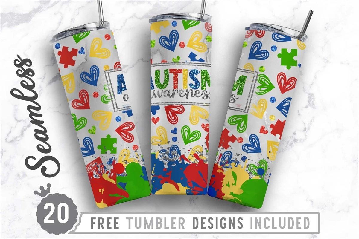 20oz Autism Skinny Tumbler Sublimation Png, Straight Tapered