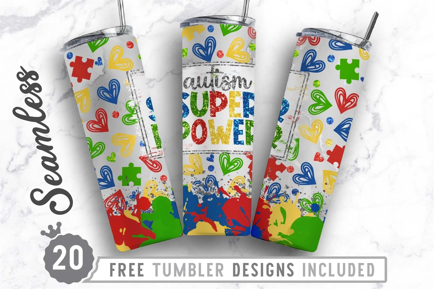 20oz Autism Skinny Tumbler Sublimation Png, Straight Tapered
