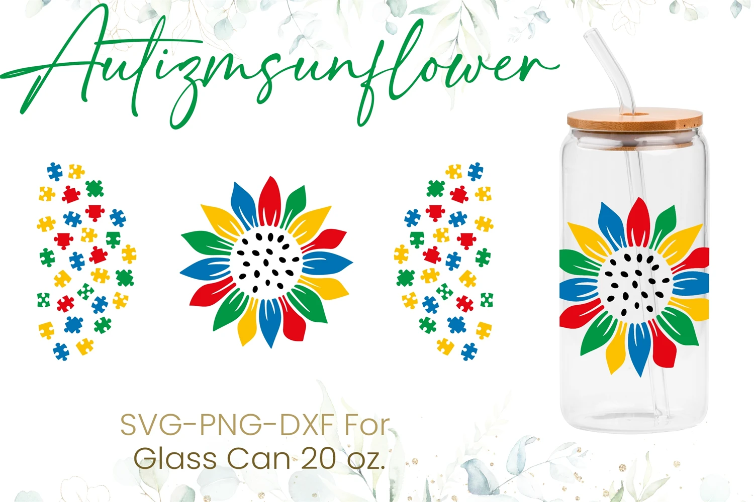 20oz Autism Sunflower Libbey Glass Can Svg,Butterfly Can Svg