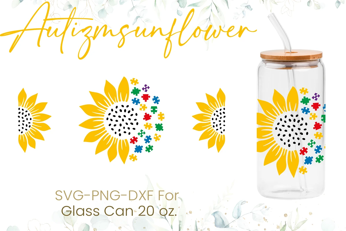 20oz Autism Sunflower Libbey Glass Can Svg,Butterfly Can Svg