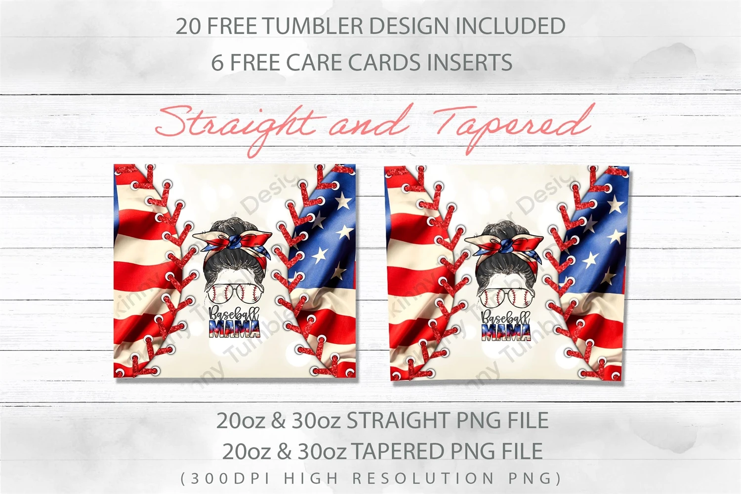 20oz Baseball Mom Skinny Tumbler Mom Life Usa Flag America