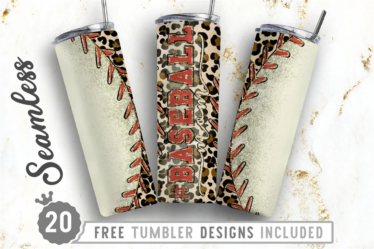 20oz Baseball Skinny Tumbler Sublimation, Straight Tapered