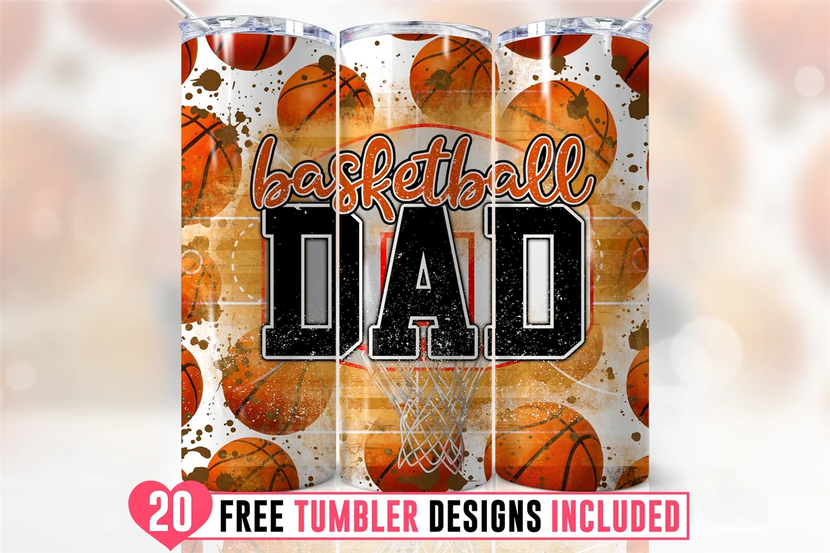 20oz Basketball Dad Glitter Skinny Tumbler Wrap Png, Sports