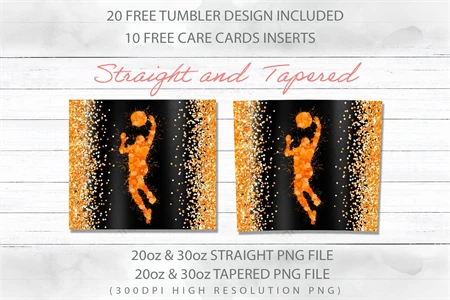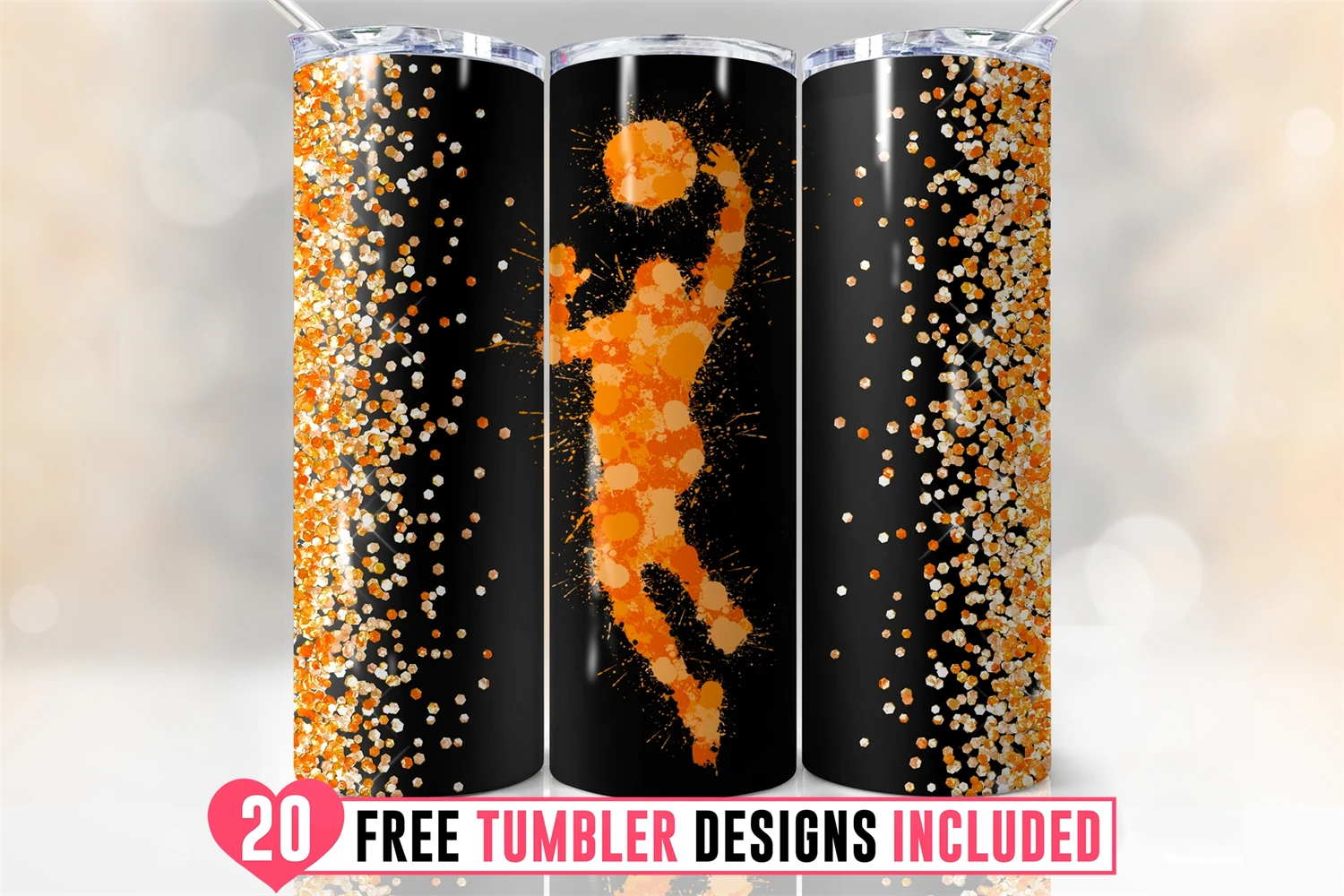 20oz Basketball Glitter Skinny Tumbler Wrap Png, Basketball