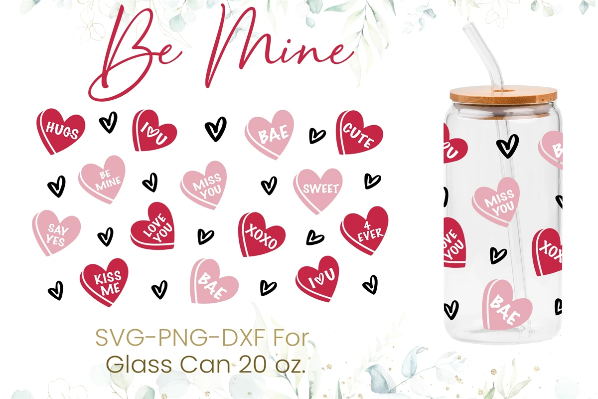 20oz Be Mine Libbey Glass Can Svg,Valentines Svg,Lipsies Svg