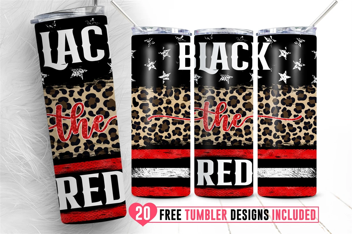 20oz Black the Red Flag Skinny Tumbler Usa Flag 4th of July