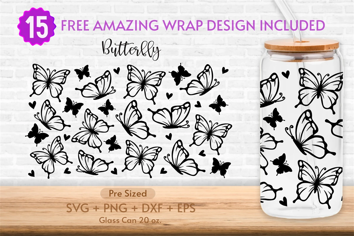 20oz Butterfly Libbey Glass Can Svg,Glass Can Full Wrap Svg