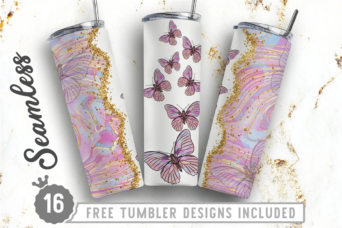 20oz Butterfly Skinny Tumbler Sublimation, Butterfly,Animals