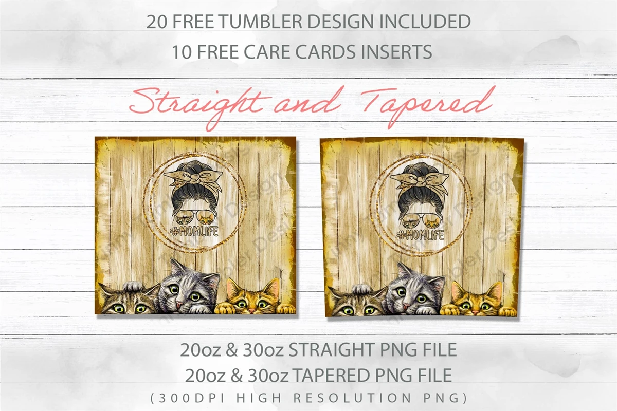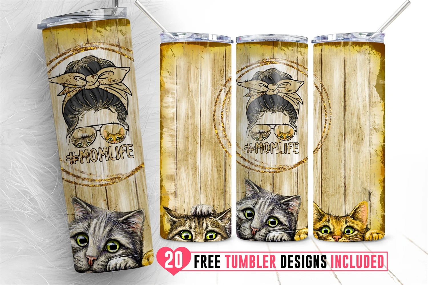 20oz Cat Mom Life Messy Bun Skinny Tumbler Sublimation Png