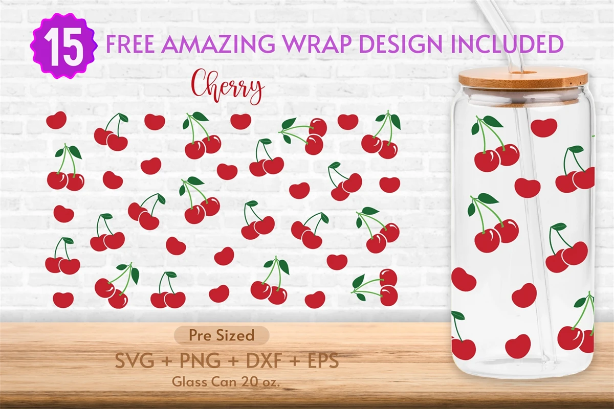 20oz Cherry Libbey Glass Can Svg, Fruit Starbucks Svg, Glass