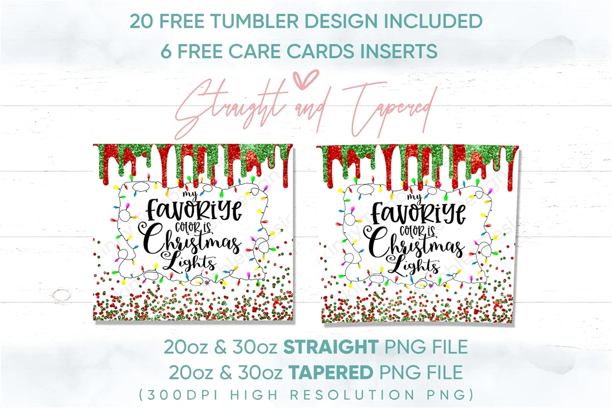 20oz Christmas Lights Skinny Tumbler Sublimation Png, Xmas